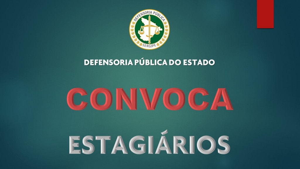 Defensoria Pública convoca estagiários do curso de Direito A Defensoria Pública do Estado de Sergipe convoca 10 estagiários do curso de Direito para se apresentarem no dia 30 de Novembro de 2015, das 8h30 às 12h, na sede da instituição situada na Travessa João Francisco da Silveira (início da Av. Barão de Maruim), …