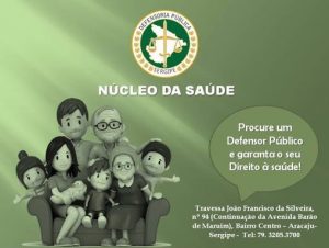 A Defensoria Pública do Estado de Sergipe, por meio do Núcleo da Saúde, estará realizando no dia 7 de Abril, data em que se comemora o Dia Mundial da Saúde, um mutirão de atendimento para a população. A ação, que faz parte do projeto “Defensor Público na sua Comunidade”, acontecerá no horário das 8h30 às 16h30 na sede da FUNDAT, localizada na Rua Gerson Farias dos Santos, nº 345, no Bairro Porto Dantas, em Aracaju.