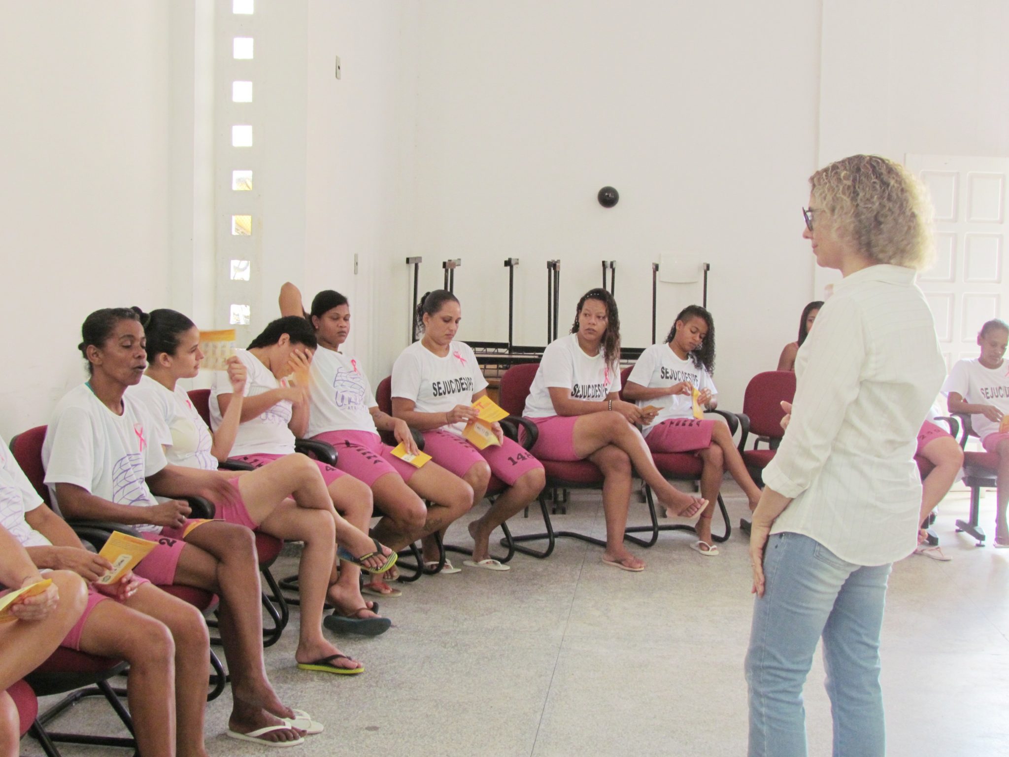 A prevenção de doenças físicas e psíquicas foi tema de palestras promovidas pela Defensoria Pública do Estado, por meio do Núcleo de Execuções Penais, na manhã desta quarta-feira, 14, no Presídio Feminino (Prefem), em Nossa Senhora do Socorro. A ação cujo nome “Prevenção Rosa” faz parte do “Outubro Rosa”, movimento que estimula a participação da população no controle do câncer de mama.