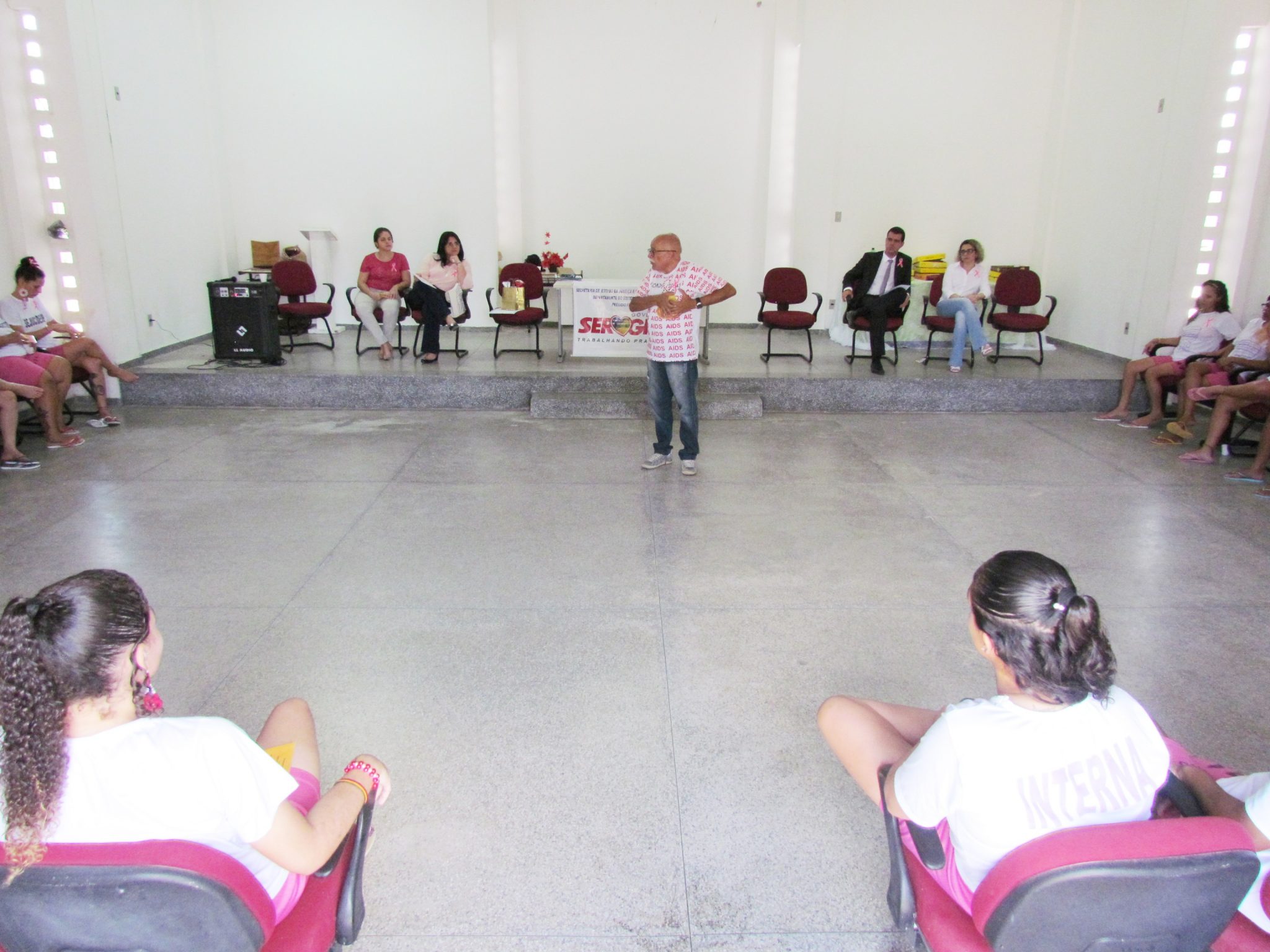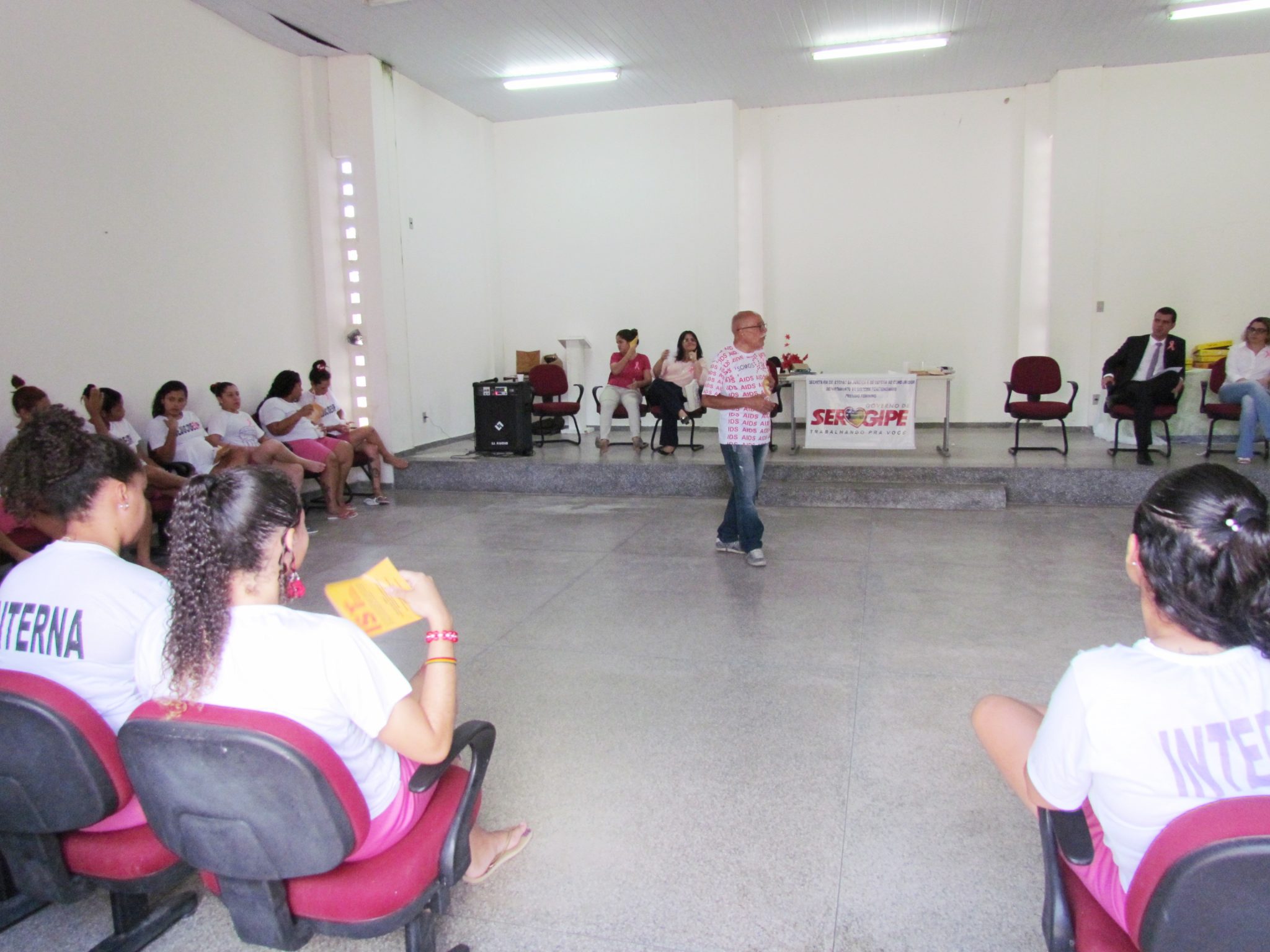 O médico Almir Santana mostrou como se faz o autoexame de mama e o uso correto de camisinhas. No final, as internas puderam interagir com os palestrantes dirimindo todas as dúvidas.