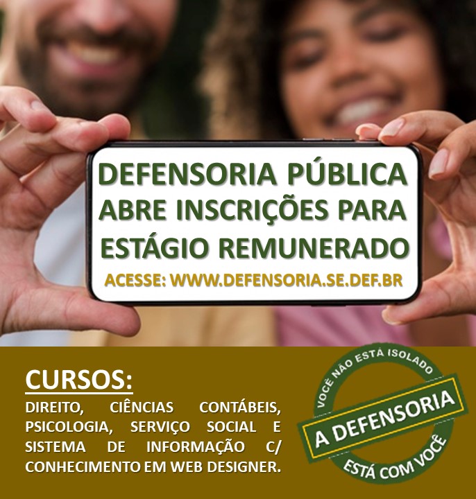 A Comissão de Processo Seletivo para Estagiários da Defensoria Pública do Estado de Sergipe abriu inscrição para estágio remunerado nos cursos de Direito, Ciências Contábeis, Psicologia, Serviço Social e Sistema de Informação com conhecimento em web designer.