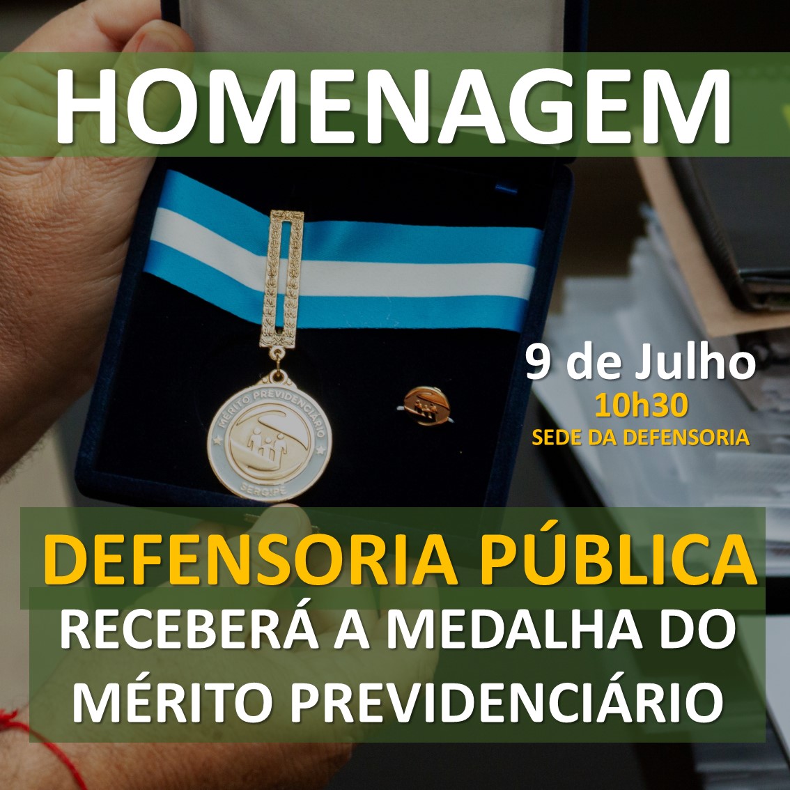 O Instituto de Previdência dos Servidores do Estado de Sergipe estará outorgando à Defensoria Pública do Estado de Sergipe, através do defensor público-geral José Leó de Carvalho Neto, a Medalha do Mérito Previdenciário. A cerimônia de entrega, restrita em virtude da pandemia, será realizada no dia 9, às 10h30, na sede da instituição homenageada, localizada na Travessa João Francisco da Silveira, 44 (Continuação da Avenida Barão de Maruim).