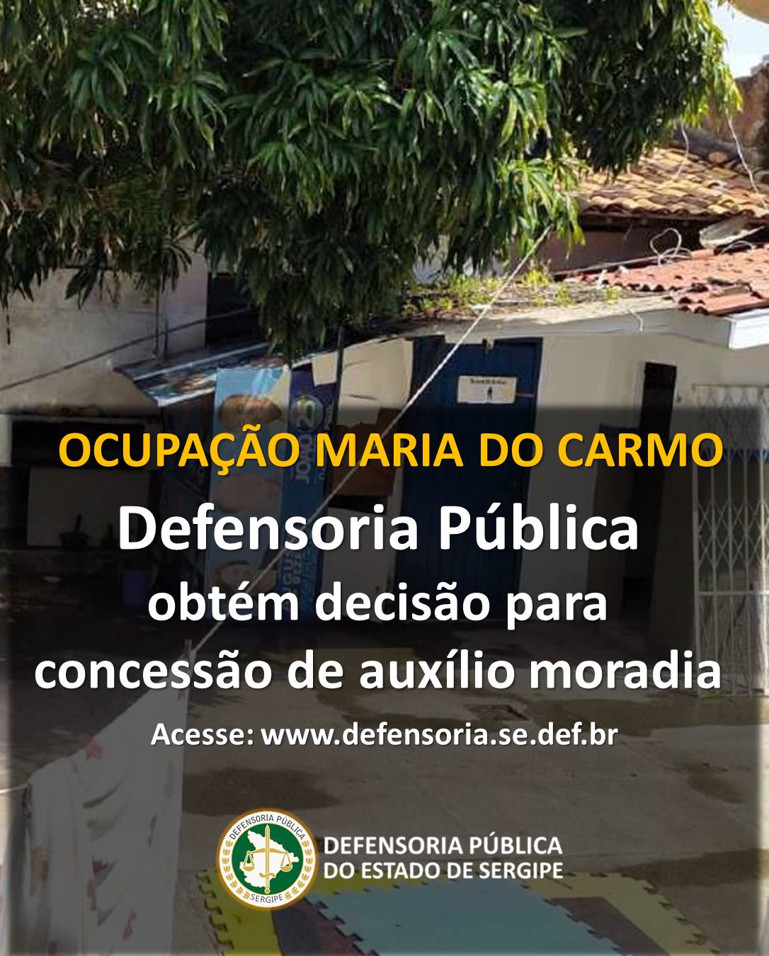 A Defensoria Pública do Estado de Sergipe, por meio do Núcleo de Bairros, ingressou com Ação Civil Pública (ACP) em face do Município de Aracaju para concessão de auxílio moradia/aluguel social às famílias da Ocupação Maria do Carmo, localizadas no antigo Colégio Unificado, no Bairro Centro, em Aracaju.