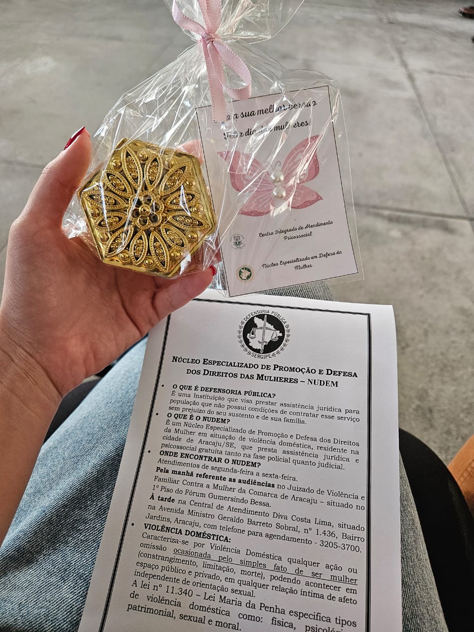 As defensoras públicas, Elvira Lorenza, Janine Reis e Juliana Falcão falaram sobre os direitos da mulher e a Lei Maria da Penha. Já a psicóloga do Ciaps, Syrlene Besouchet, pontuou autoestima, saúde mental e física, e higiene pessoal.
