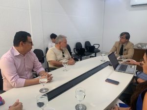 Os defensores públicos, Natalie Brito e Sérgio Barreto Morais, e os servidores, Fabricio Ribeiro Batista e Rafael Souza, reuniram-se na tarde de terça-feira (27), com o secretário Municipal da Pessoa com Deficiencia, Antônio Luiz dos Santos, para apresentarem o novo Núcleo do Idoso e da Pessoa com Deficiência.
