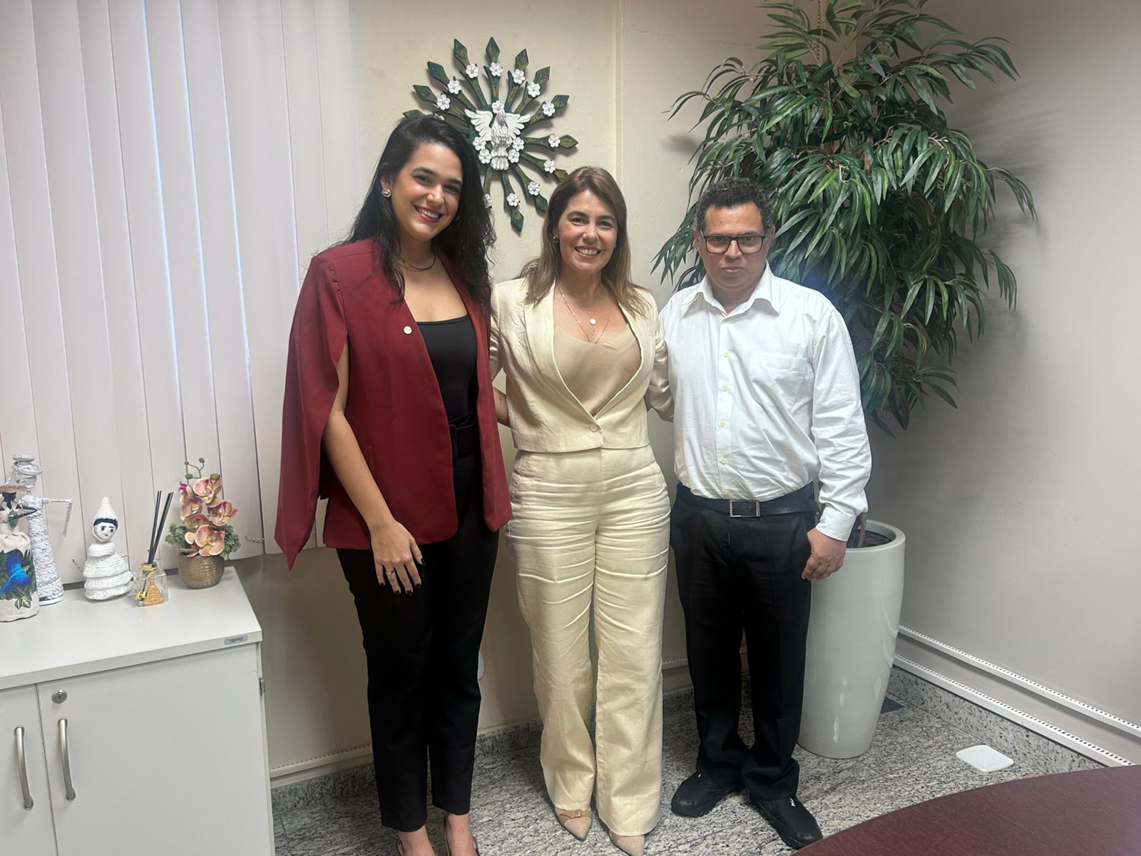 A defensora pública e diretora do Núcleo da Pessoa Idosa e da Pessoa com Deficiência, Natalie Brito Martins, e o colaborador Fabrício Ribeiro estiveram reunidos na quinta-feira, 28, com a secretária de Estado da Assistência Social e Cidadania (Seasic), Érica Mitidieri. O encontro aconteceu na sede da Secretaria.