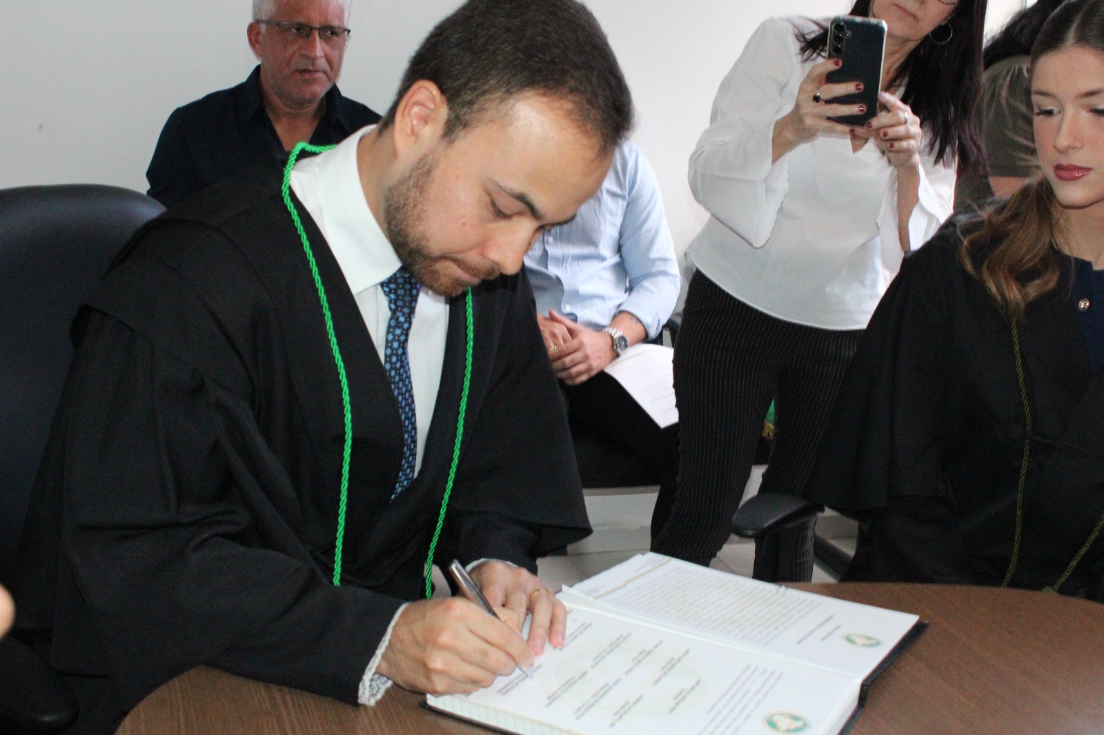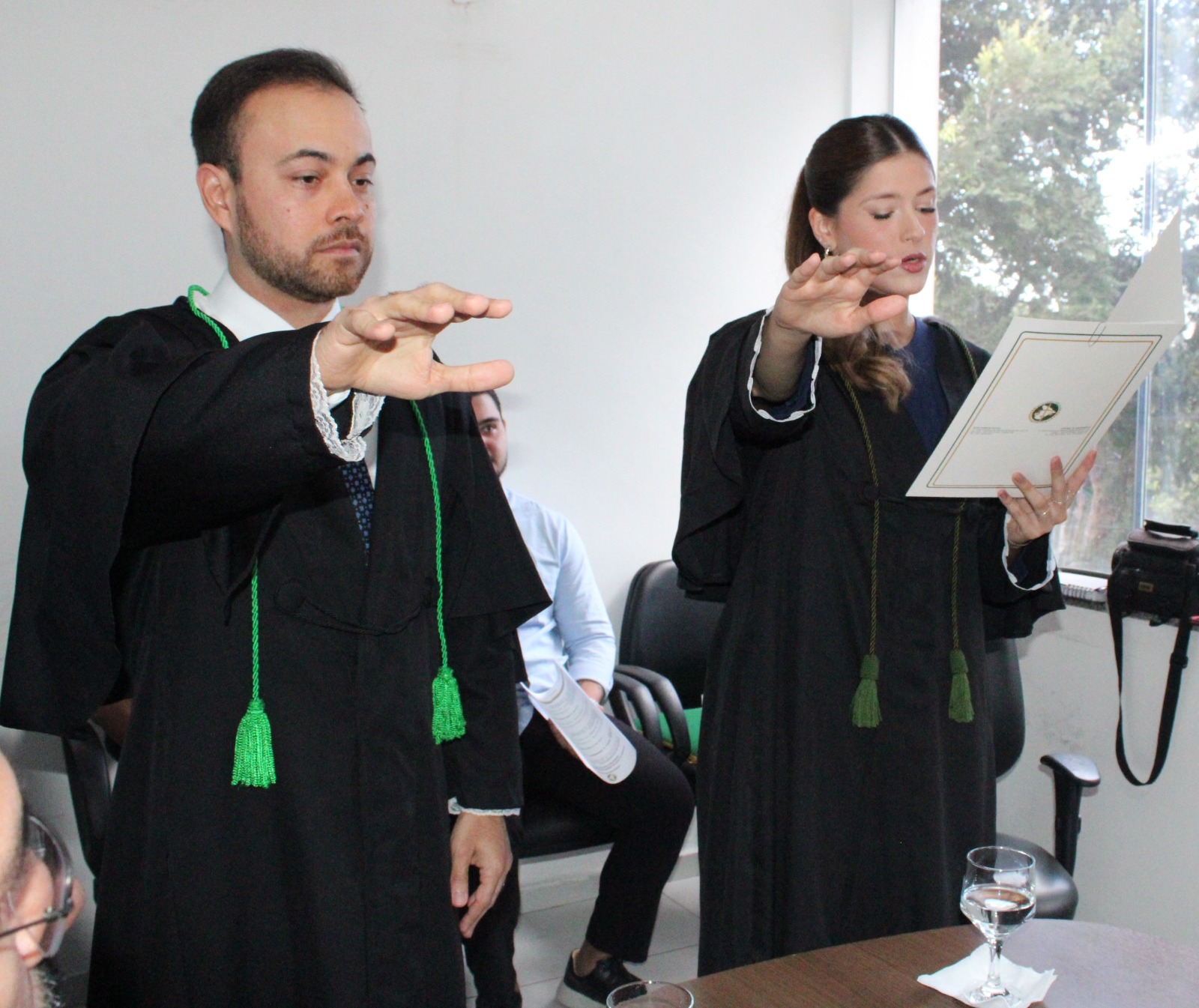 Durante o ato, os novos membros realizaram o juramento oficial e assinaram o termo de posse. Em seguida, receberam botons e ultrabooks, simbolizando o início de suas trajetórias na Instituição e a preparação para o exercício de suas funções em prol do acesso à justiça.