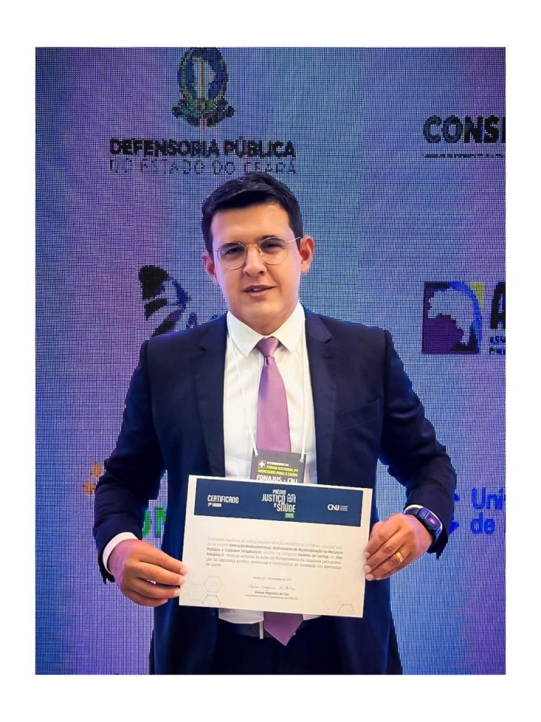 O defensor público, diretor da CRLS e autor do projeto premiado, Saulo Lamartine Macêdo, recebeu o prêmio durante o Fórum Nacional do Judiciário para a Saúde – FONAJUS – CNJ.