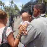 O defensor público Alfredo Nikolaus, a assessora de comunicação Débora Matos e o fotógrafo Iran Souza passaram mal ao inalarem o gás. “Foi um momento de terror. Parecia que estávamos em um campo de guerra ao ver pessoas desmaiando, crianças chorando com falta de ar, mulheres grávidas passando mal, enfim, foi uma cena triste. Ficávamos com falta de ar e nossos olhos ardiam e queimavam, foi quando os moradores nos deram assistência dando vinagre para cheirarmos e passarmos no rosto. Débora ficou entre os tiros de borrachas pedindo aos policiais para pararem e mandarem uma ambulância para as crianças que estavam passando mal, mas eles não deram a mínima”, relatou o fotógrafo Iran.