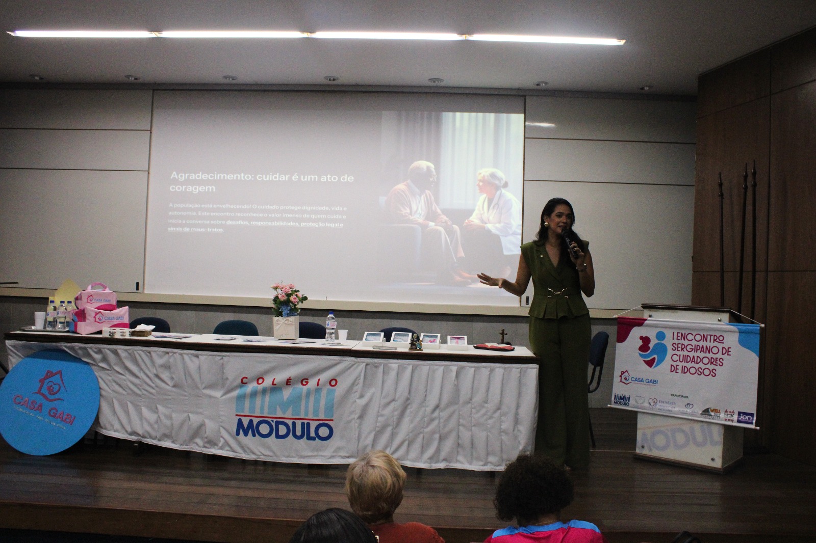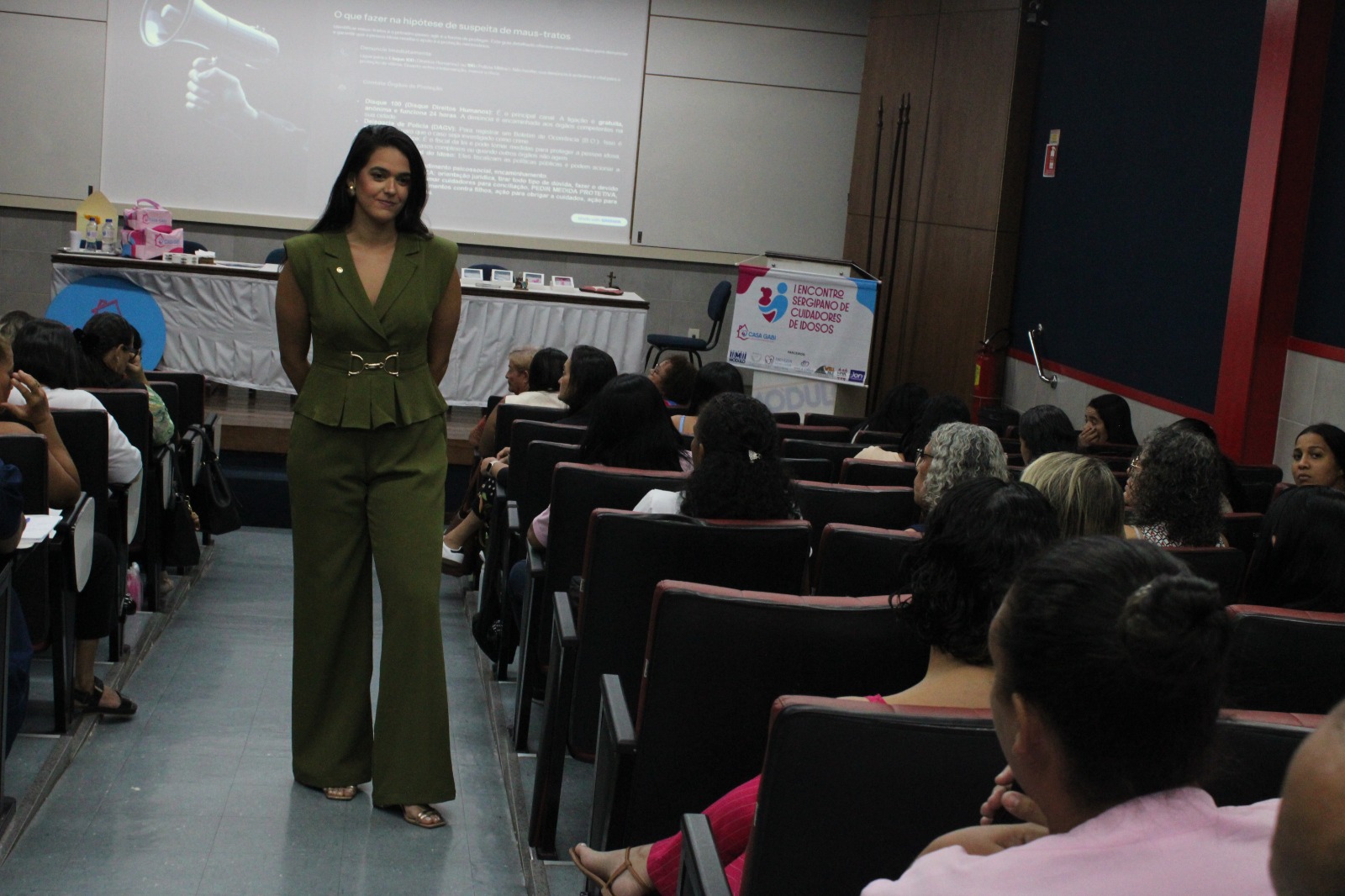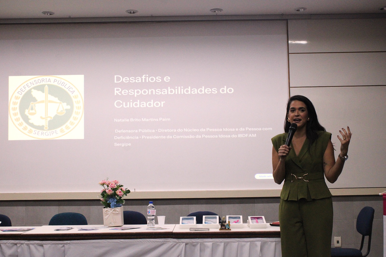 A Defensoria Pública do Estado, por meio da defensora pública e diretora do Núcleo da Pessoa Idosa e da Pessoa com Deficiência, Natalie Brito, ministrou palestra durante o I Encontro Sergipano de Cuidadores de Idosos, promovido pela Casa Gabi no último sábado (21), no Teatro do Colégio Módulo, em Aracaju.