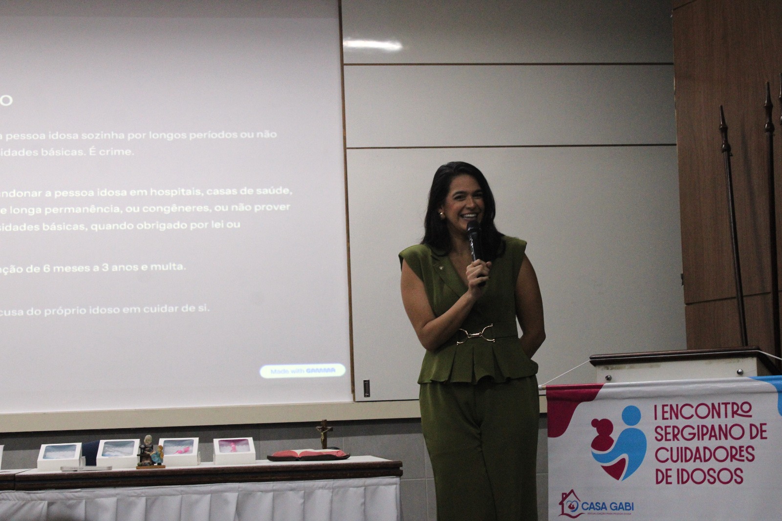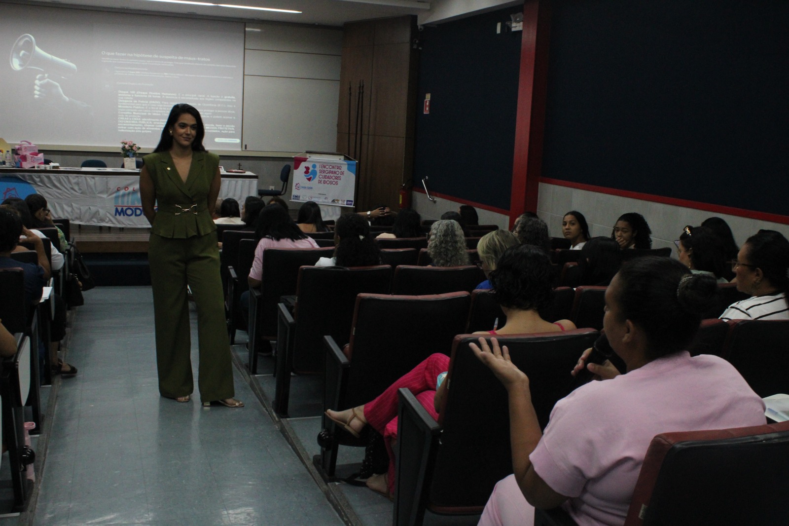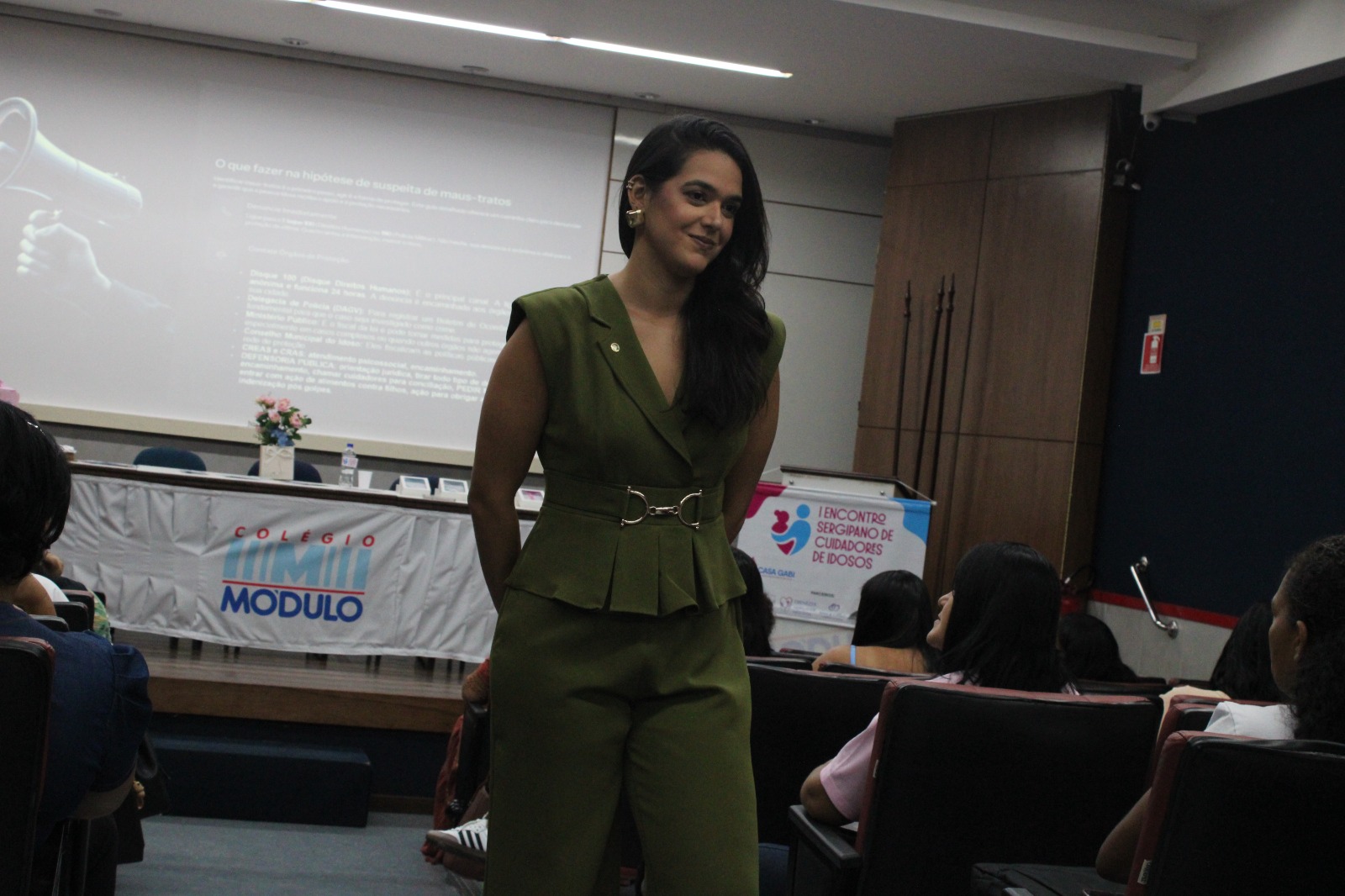 A Defensoria Pública do Estado, por meio da defensora pública e diretora do Núcleo da Pessoa Idosa e da Pessoa com Deficiência, Natalie Brito, ministrou palestra durante o I Encontro Sergipano de Cuidadores de Idosos, promovido pela Casa Gabi no último sábado (21), no Teatro do Colégio Módulo, em Aracaju.
