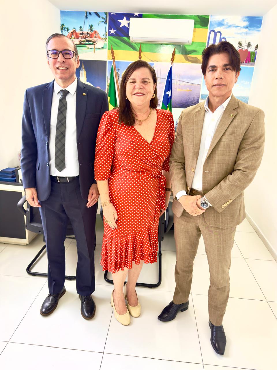 O defensor público-geral, Leó Neto e o subdefensor-geral Institucional, Jesus Jairo Lacerda receberam na manhã desta quarta-feira, 21, a secretária de Estado de Políticas para as Mulheres, delegada Georlize Teles.