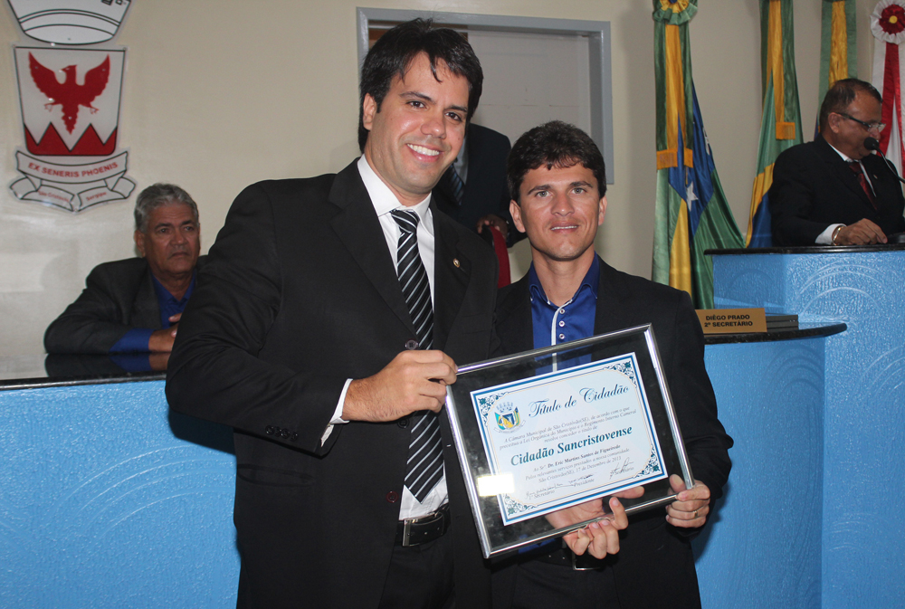 O defensor público titular da Defensoria Pública Criminal de São Cristóvão, Eric Martins Santos de Figueiredo, recebeu durante solenidade realizada na terça-feira, 17, na Câmara Municipal de São Cristóvão, o título de Cidadão Sancristovense. O requerimento, aprovado por unanimidade pelos pares da Casa, foi de autoria do vereador Lucas Diego Prado Barreto (PRB).
